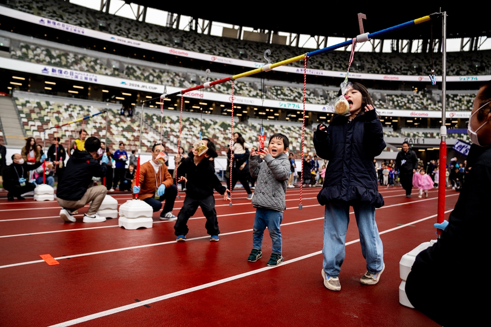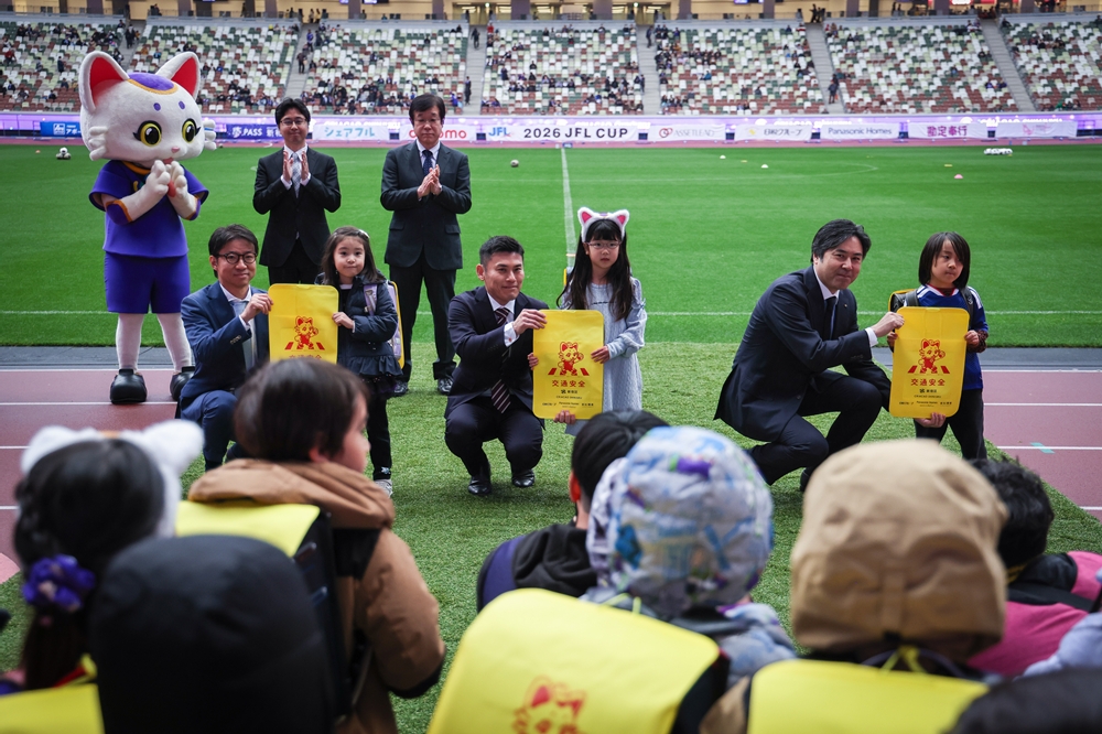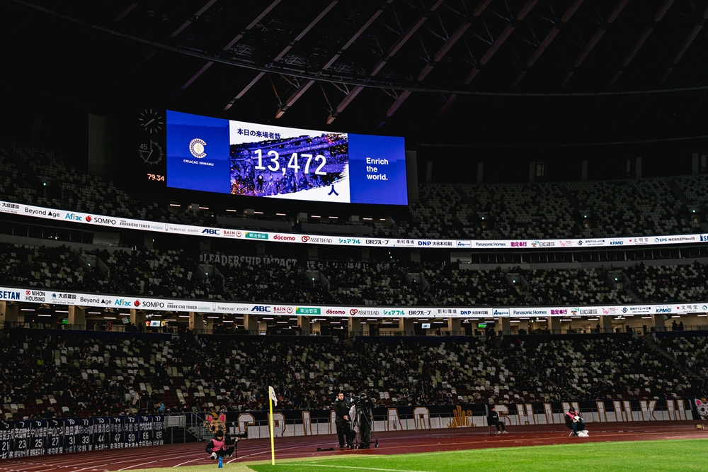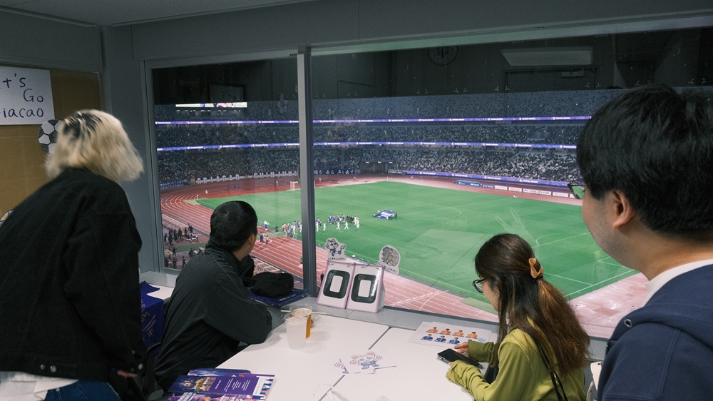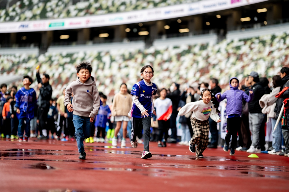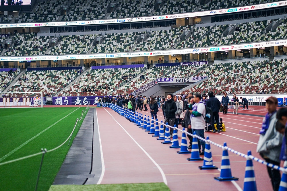 試合前の国立競技場のトラックを実際に歩きながら、ピッチレベルでスタジアムの雰囲気を体感。402枚の参加券を発券。