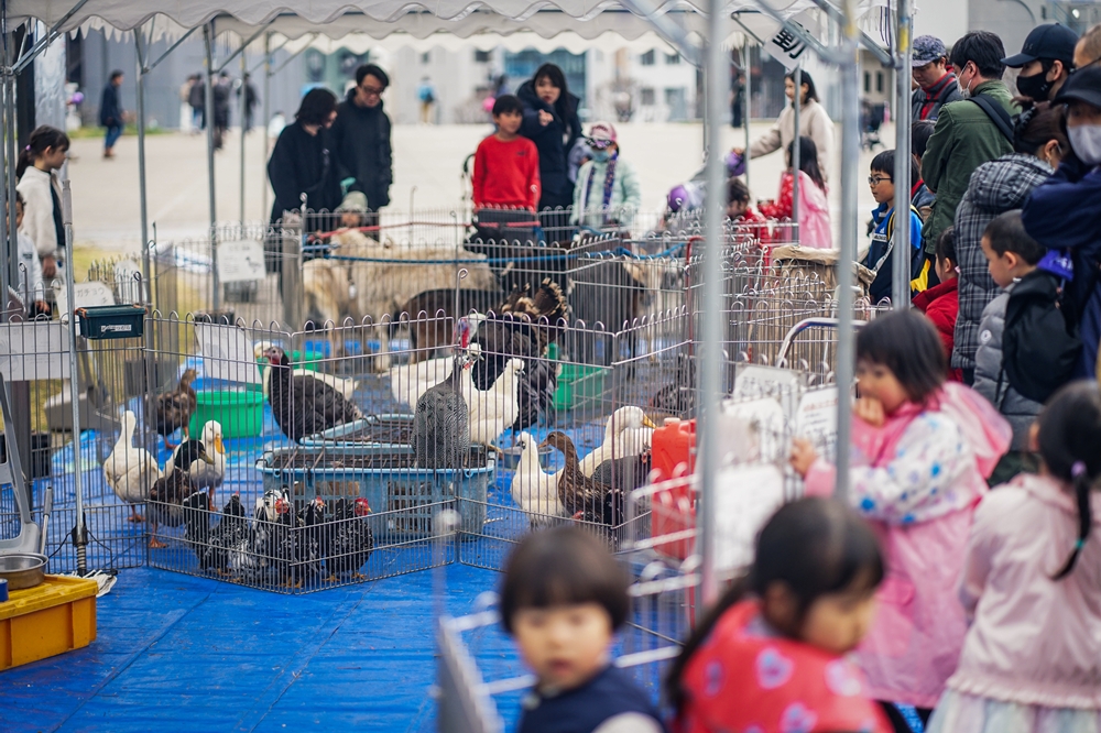 動物との触れ合い、消防車などのはたらくくるまの展示、駅長・駅員の制服を着て記念撮影。