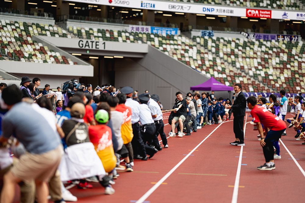新宿に住む、新宿で働く、新宿で学ぶ方々、新宿に関わる皆さんを中心に参加し、”新宿陸上初代NO.1”の称号を懸けて競い合った。種目は綱引き(7団体)と400mリレー(9団体)。約150名が参加。
