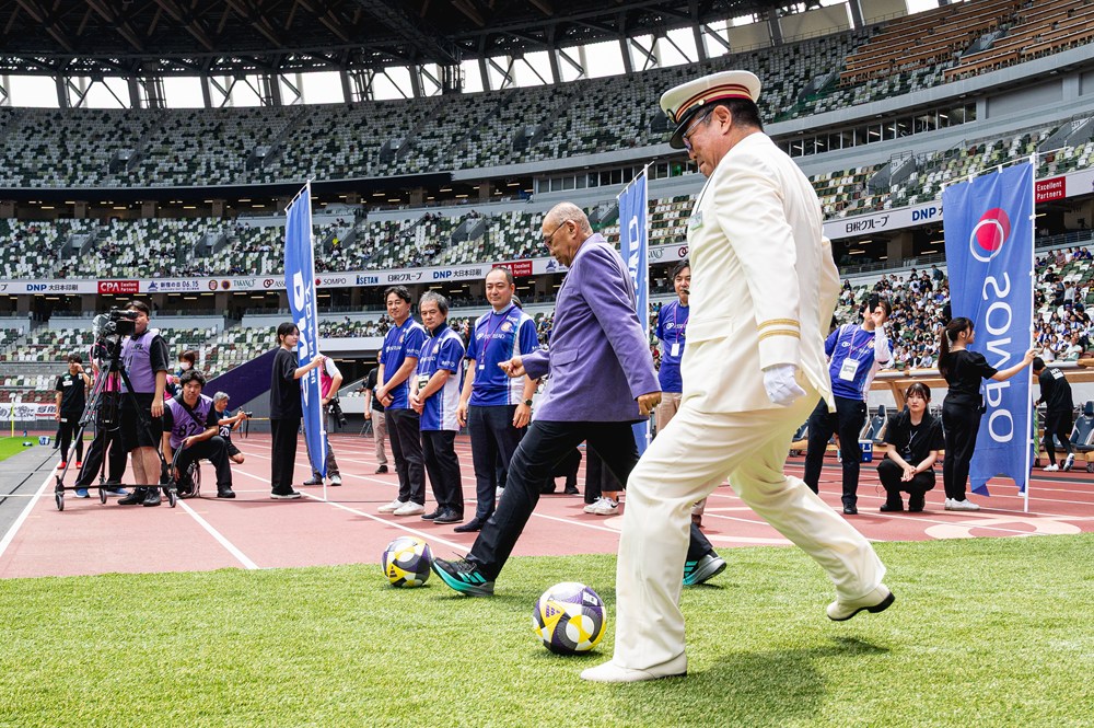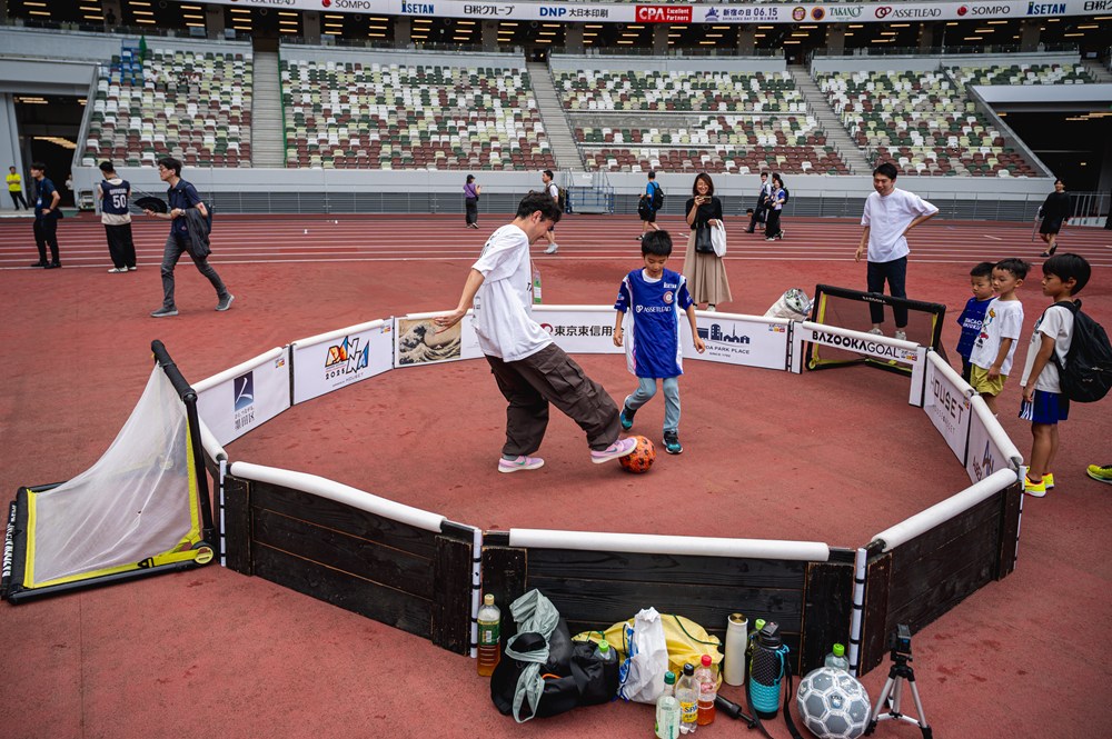 トラックを歩ける貴重な機会に加え、ブラインドサッカー®、デフサッカー、ストリートサッカー、キックターゲットと多彩なサッカー体験コンテンツも。約600人が参加。