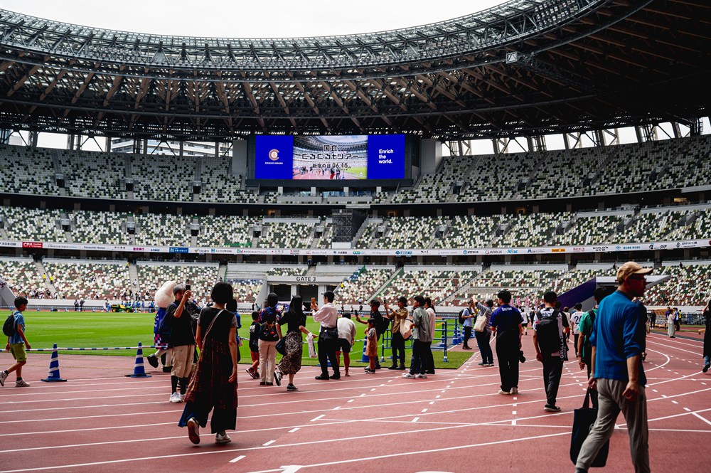 元陸上日本代表の伊藤友広らを講師に「かけっこ教室」を開催。子ども334人が参加(保護者を含めると642人)。昨年に続き、木村屋總本店・新宿高野・中村屋・文明堂東京の協力で「ぱん食い競走@国立競技場」が内容の一部に。