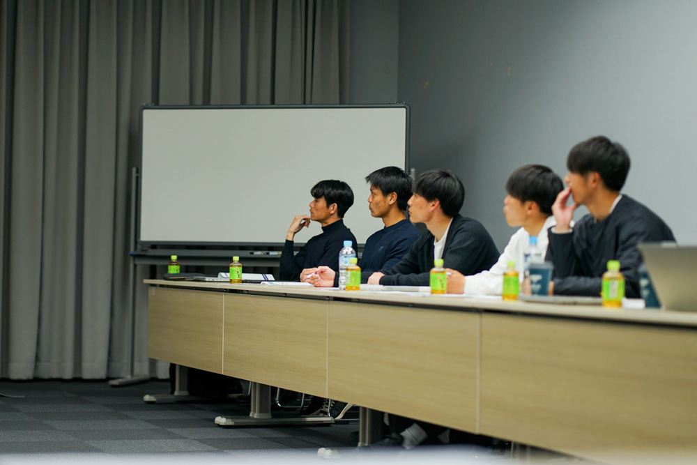 日税グループとの取り組みを中心となって進める岩舘は、法人パートナーとして6年目を迎える同社をあらためて選手に紹介。クリアソンが関わる人たちに豊かさを届けるためには、自分たちがまず豊かである必要があると、資産形成について理解を深めることの意義を説明しました。
