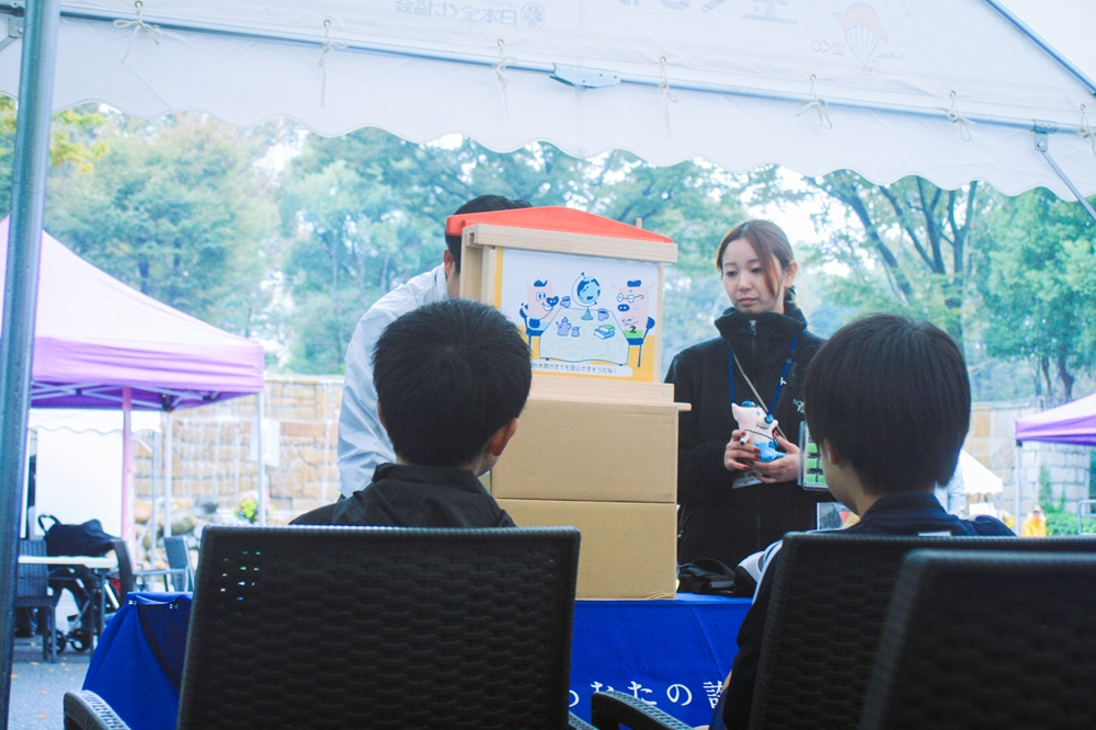 法人パートナーであるパナソニックホームズのブースでは紙芝居「4ひきのこぶた〜災害に強い家」を上演。4兄弟の末っ子のこぶたが、お兄さんたちの家を訪ねながら家づくりを勉強する心温まるストーリーに、多くの家族が耳を傾けました。