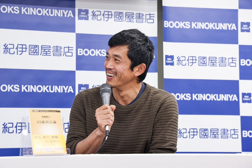 現役を続ける39歳の岡本は、角幡氏の複数の著作にかねてより感銘を受けており、最新刊『43歳頂点論』(新潮新書)の発売というタイミングで、関係者を通じて対談を依頼。角幡氏の快諾により、今回のイベントが実現しました。この日も丹沢山系を走ってから会場に来たという岡本は、角幡氏を前に「メッシやクリスティアーノ・ロナウドよりも、死ぬまでに一番お会いしたかったのが角幡さんです」と語り、興奮を隠せない様子でした。
