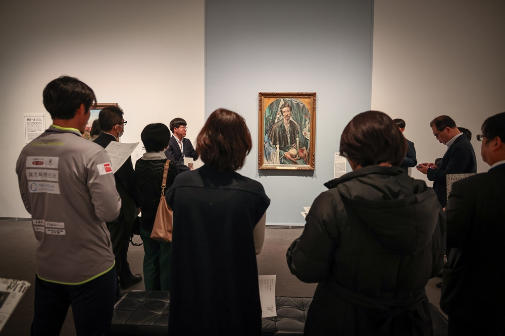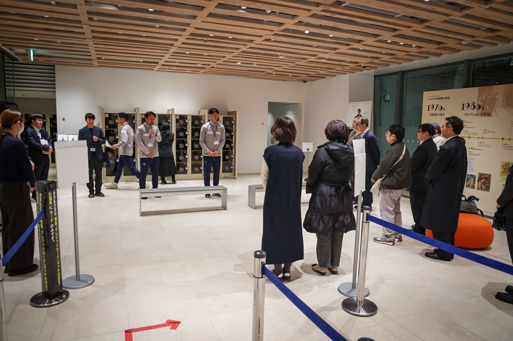同館で2月15日まで開催中の企画展「モダンアートの街・新宿」を舞台に行われた本イベントは、メンバーシップ会員限定の企画。閉館後の展示室を貸し切り、阿部雄太、島田譲、澤井直人の3選手とともに、学芸員によるギャラリートークを楽しむ特別な時間が用意されました。