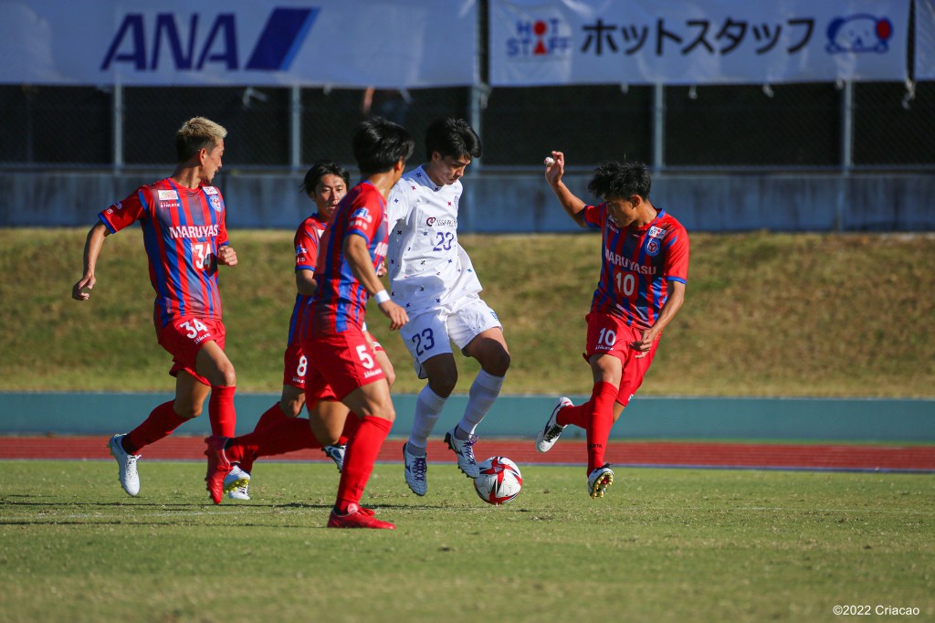 1失点目は、相手のクロスが直接入った感じで、狙ったか狙ってないかわかりませんが、サイドに人数はいたのに、相手に時間を与えてしまったことが良くなかった。FCマルヤス岡崎は出して動いてというのが得意で、それでチャンスを作るチームだったので、時間を与えないということをもっと徹底すべきでした。