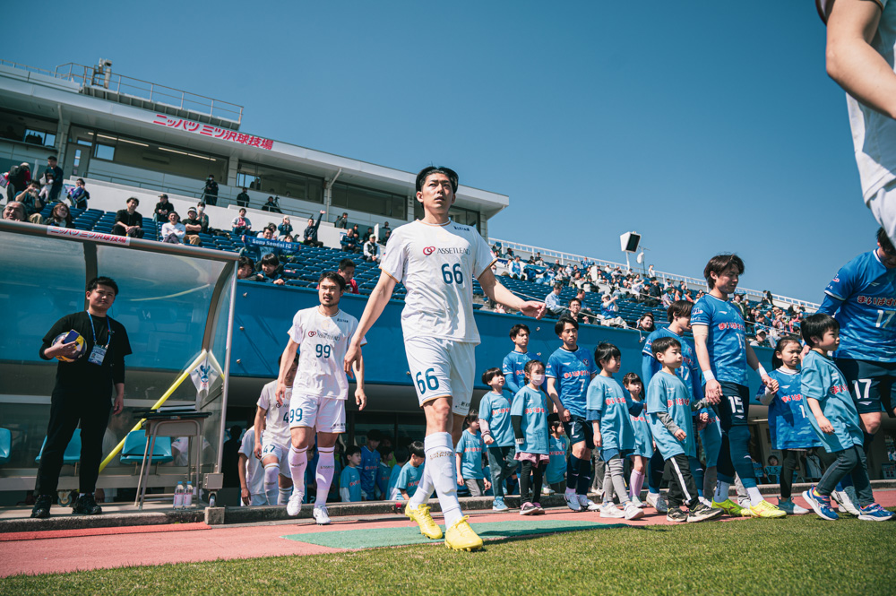 前節とは打って変わって春の陽気。クリアソンとしては初めて足を踏み入れたニッパツ三ツ沢球技場は、サッカー専用スタジアムならではの熱気で溢れる。