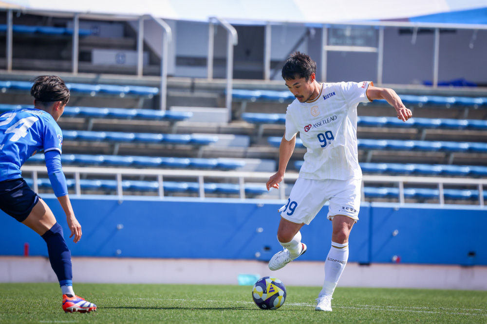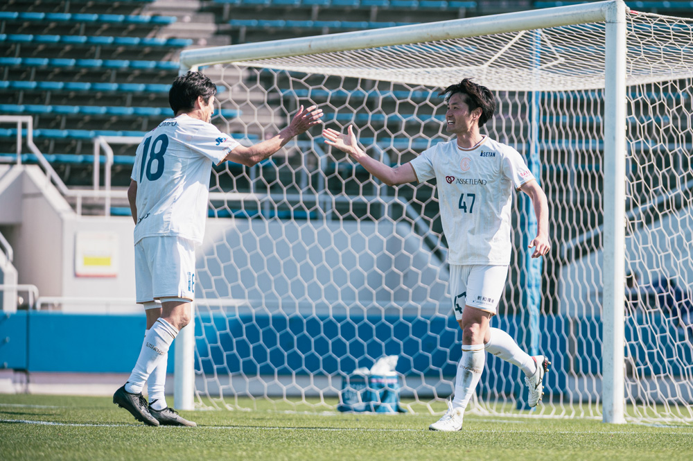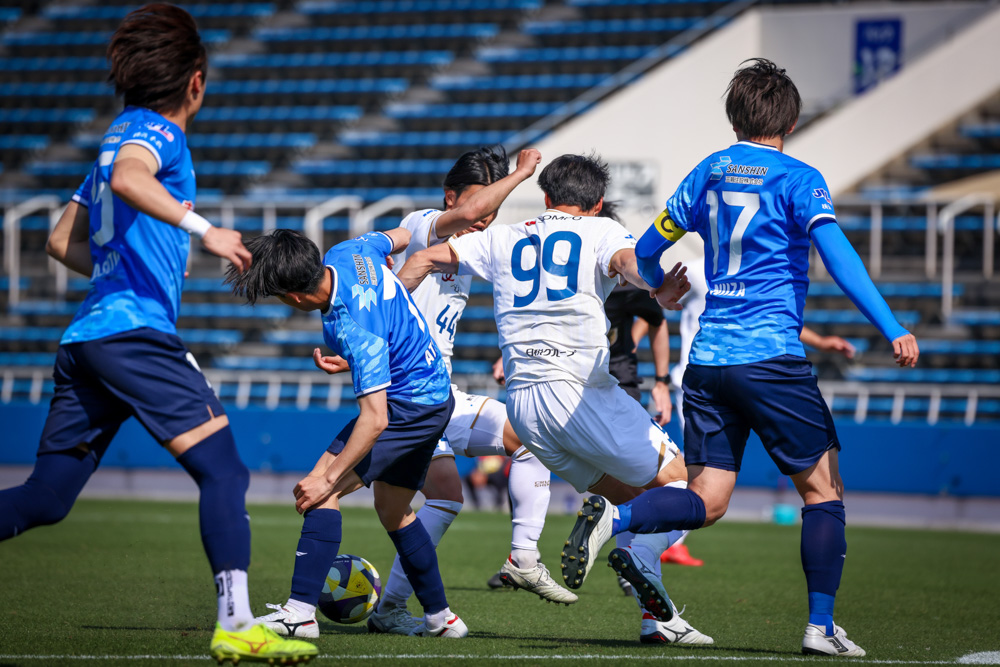 開始早々、相手陣内でスローインを奪うと中山仁がゴール前でキープ。一度は奪われるがクリアボールを拾った島田が得意の左足を振り抜き、これがネットに突き刺さる。昨年J3だったY.S.C.C.横浜を相手に、最高の立ち上がりとなる。