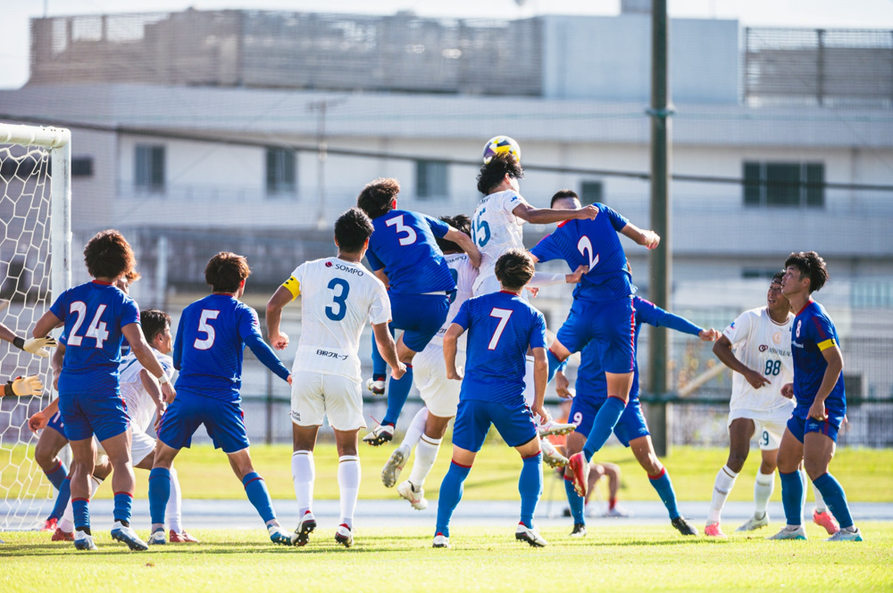 ラストプレーのCKでも、同じく猪野毛が良いボールを上げる。競ったボールはゴール方向に飛ぶが、ギリギリでかき出され、そのままタイプアップ。