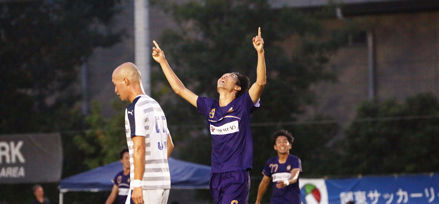 前半34分、右サイド石井の突破からフリーキックを得る。ディフェンスラインの間にふわりと落としたボールを上原が右足インサイドで合わせて、待望の追加点!2-0で前半を折り返す。