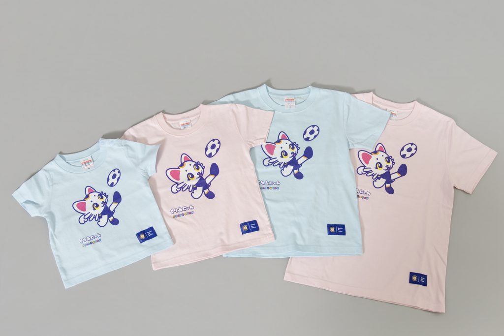 お子様に大人気のくりあにゃんが、4種類の可愛いデザインTシャツになって登場。スタジアムやお出かけにぴったりの、元気いっぱいな一枚です!