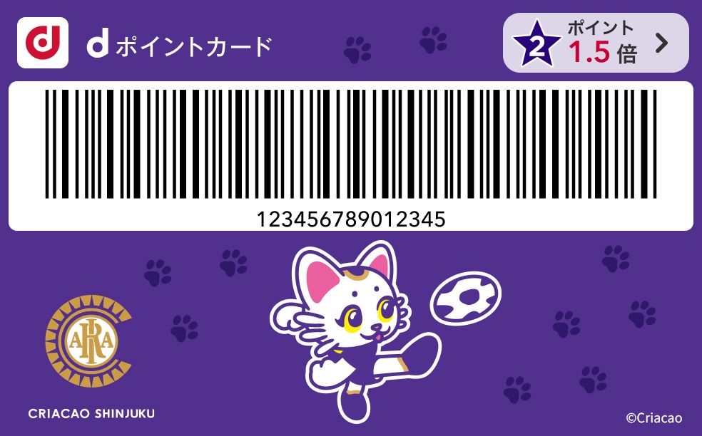 クラブエンブレム、公式マスコット「くりあにゃん」、ポインコとくりあにゃんのコラボデザインの3種類の券面をご用意しています。お好みのデザインを設定して、お買物の時間もクリアソン新宿と共にお楽しみください。