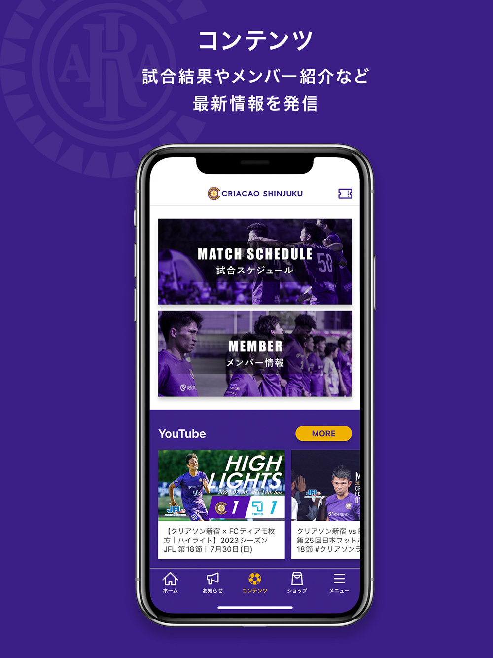 Criacao Shinjuku(クリアソン新宿)は、今後もサッカーを通じて感動を創造し、人々の結び目になることを、ホームタウンである新宿から実現するとともに、「Enrich the world.」 を掲げ、誰もが豊かさの体現者となれる社会を目指してまいります。
