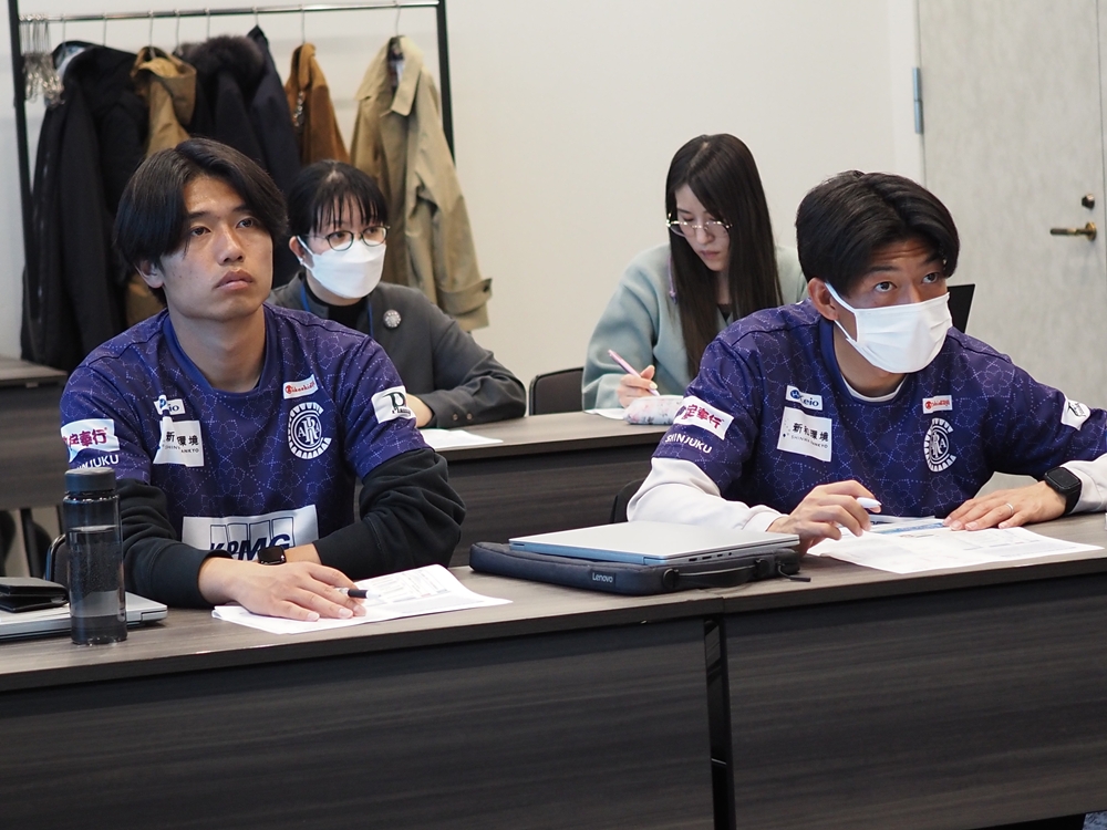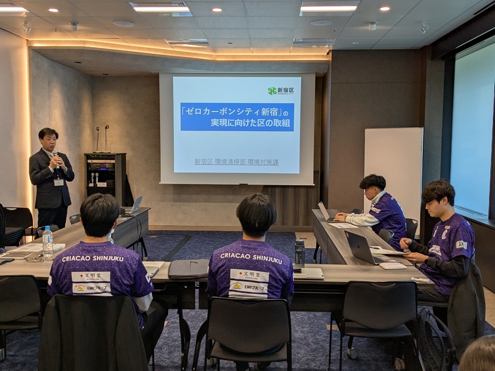 そんな吉田が環境に関わるきっかけは昨年の夏、新宿区こども環境絵画コンテストの審査員の役割を、上田康太(元選手、強化部)から引き継いだこと。また、ほどなく、環境教育カードゲーム「マイアース® 新宿・神田川パッケージ」の制作プロジェクトにも誘われた。12月の「新宿SDGsフェス2025」でプロギング(ジョギングしながらのごみ拾い)を担当し、NPO法人新宿環境活動ネットとやり取りも深まり始めた。「ちょっとずつ、知識が増えてきた」中でやってきた転機が、2026年2月、3月に受講した新宿区の脱炭素チューター講習だった。