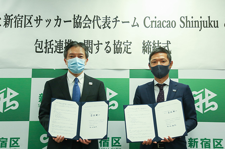 スポーツの振興だけではなく、地域社会の発展、多文化共生の推進などで、新宿区と相互に連携を図ることを約束しました。