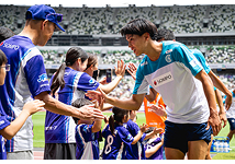 ※写真は国立競技場での試合で実施した「試合前に選手とハイタッチ」です。