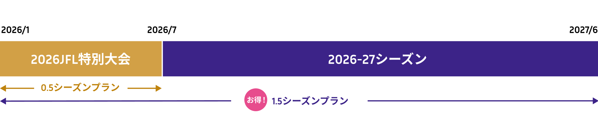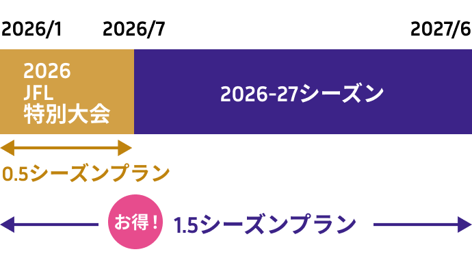 2026特別大会と2026-27シーズンを合わせた1.5シーズンプランと、2026特別大会のみの0.5シーズンプランがあります。