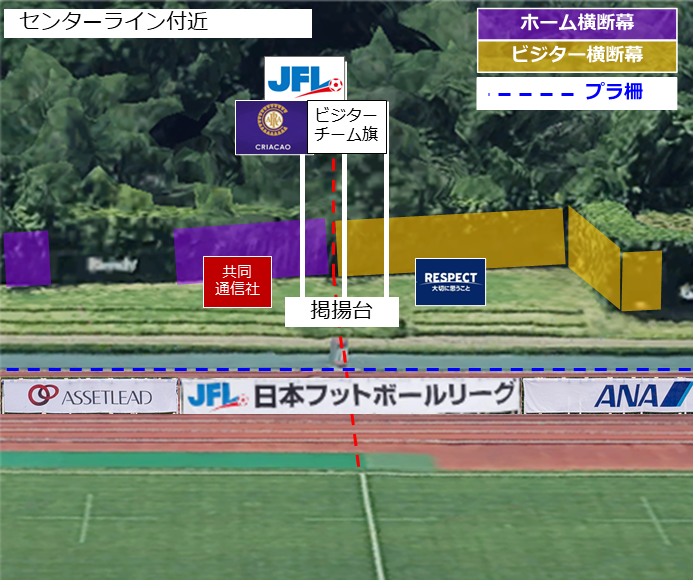 (vii) ビジターサポーターの皆様はスポンサー名や特定の企業名及び製品名 (連想させるものも含む)の入った横断幕等の使用はできません。